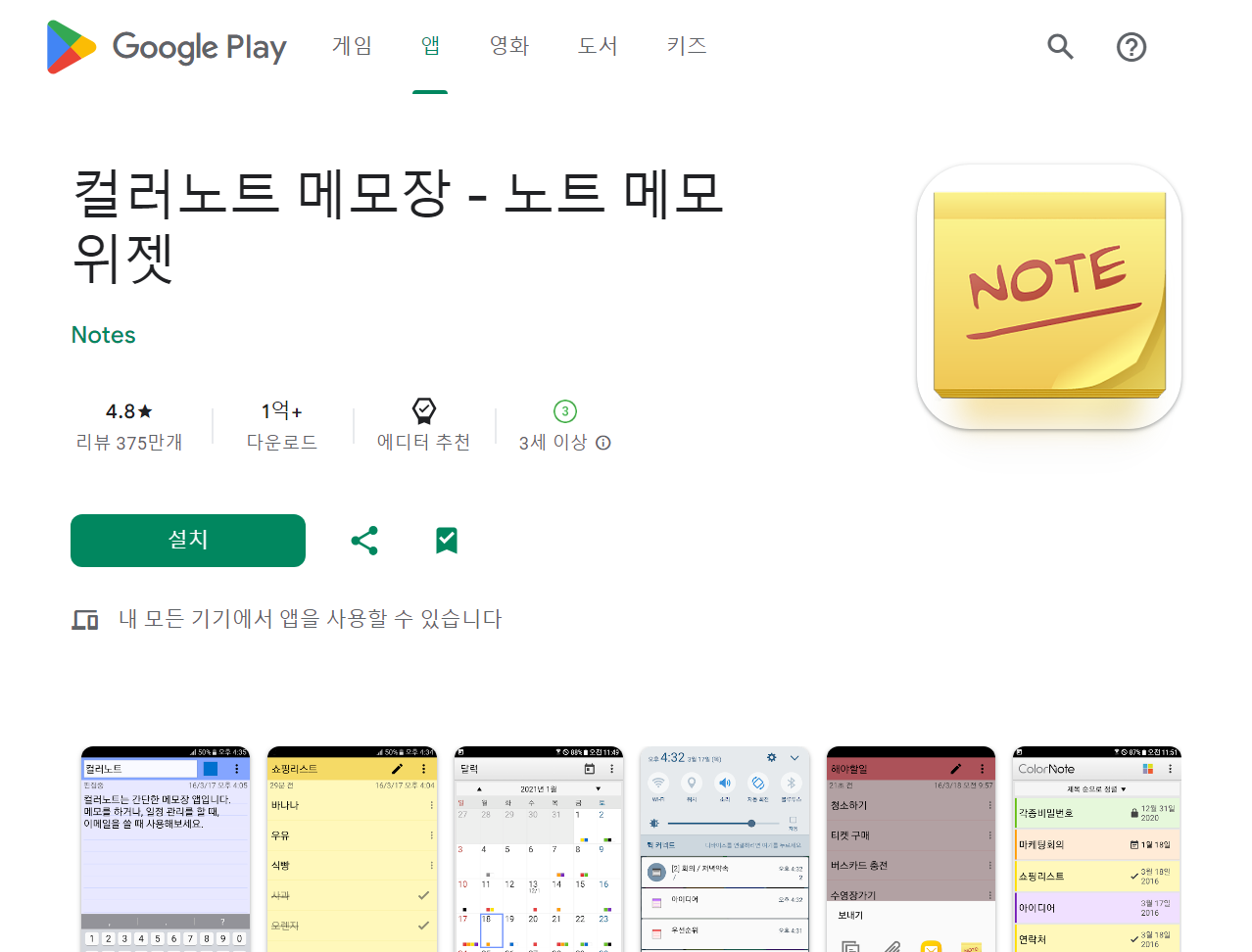 컬러노트 메모장 - 노트 메모 위젯 - Google Play 앱